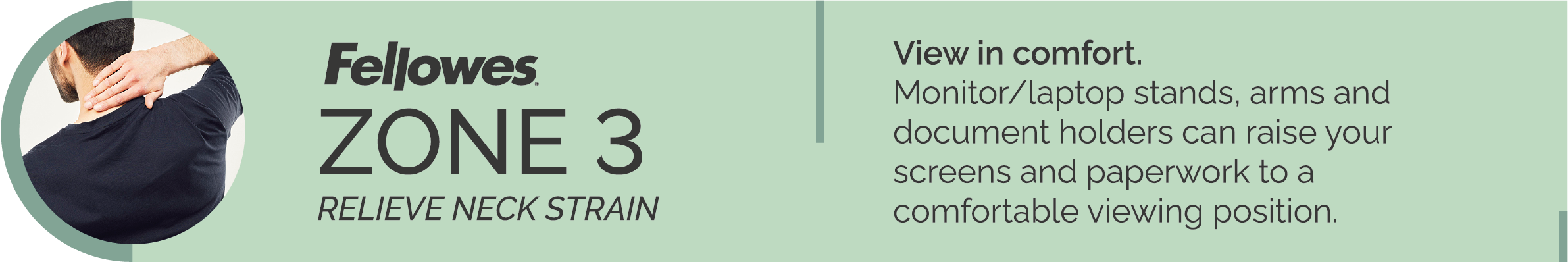 Position your screen and documents at arm’s distance to avoid straining your eyes and neck leaning forwards.