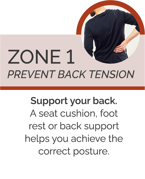 A seat cushion, foot rest or back support helps you achieve the correct posture.
