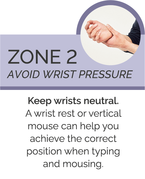 Keep forearms parallel with the top of your desk and wrists in a neutral position.