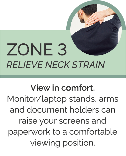 Leaning forward and tilting your head up or down to see your screen or documents can place strain on your neck and back.