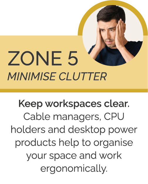 Cluttered workstations can hinder focus, reduce productivity, and increase the risk of injury through stretching & twisting.